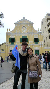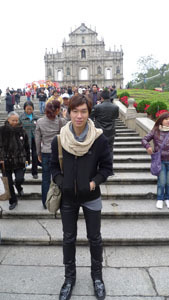 她是我在澳門唯一搭訕的一個可愛女生,旁邊穿藍色外套的弟弟太害羞不跟我照,他說合照前要先買羊肉滷,哭杯還好妹妹大方呀!但是我歸咎於我對女孩子一向是溫柔體貼、誠懇老實又帶有一種羞怯才這麼有女人緣!